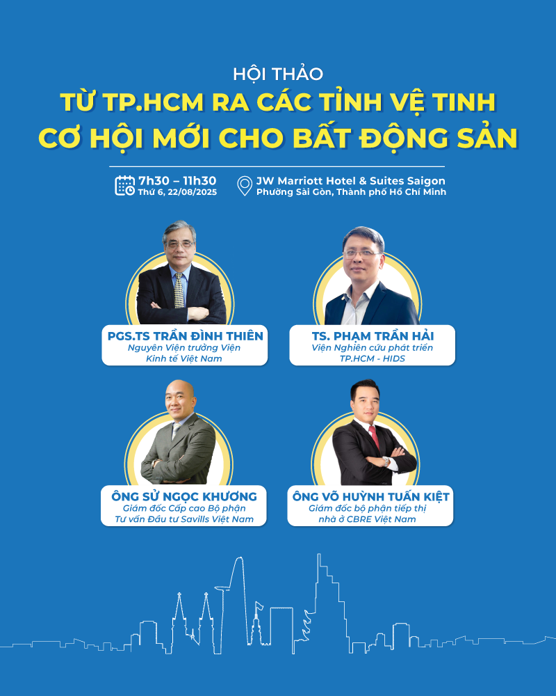 Trong bối cảnh đó, hội thảo “Từ TP.HCM ra các tỉnh vệ tinh – Cơ hội mới cho bất động sản” được tổ chức với kỳ vọng mở ra một góc nhìn toàn diện về xu hướng giãn dân đô thị, sự nổi lên của các vùng kinh tế vệ tinh, và cơ hội cho nhà đầu tư đón đầu làn sóng phát triển mới..